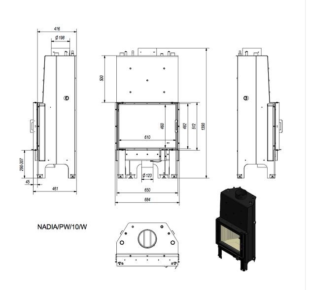 Инструкции, чертежи, документы - Каминная топка Kratki Pro Nadia/PW/10/W
