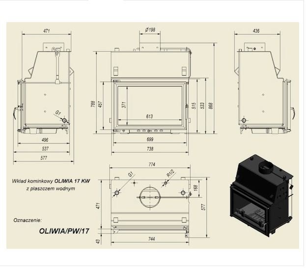 Инструкции, чертежи, документы - Каминная топка Kratki Oliwia/PW/17/GLASS (двойное стекло)