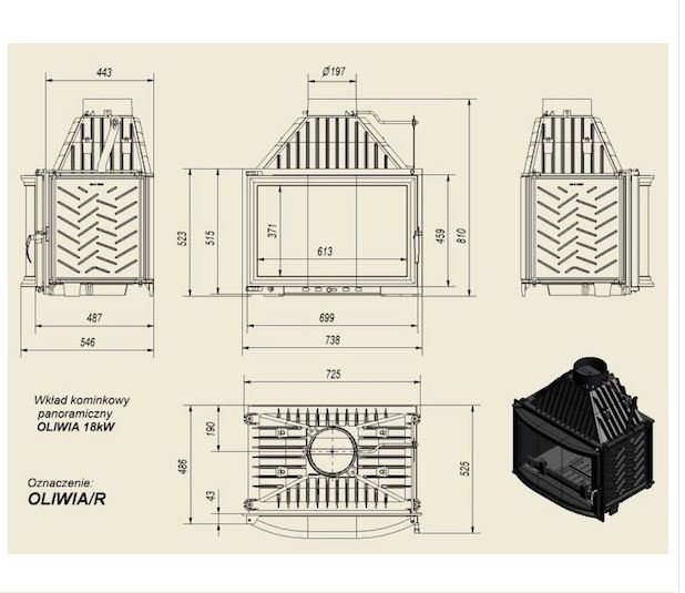 Инструкции, чертежи, документы - Каминная топка Kratki Oliwia/R (панорама)