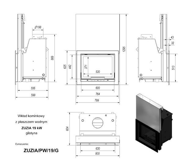 Инструкции, чертежи, документы - Каминная топка Kratki Zuzia/PW/19/G/W (гильотина)