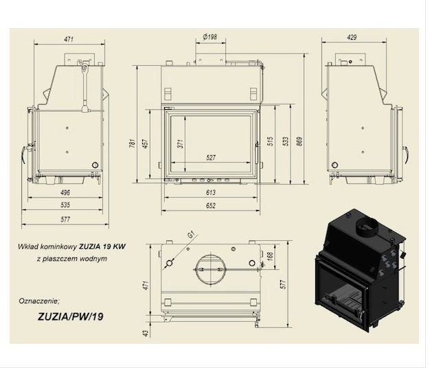 Инструкции, чертежи, документы - Каминная топка Kratki Zuzia/PW/19/W
