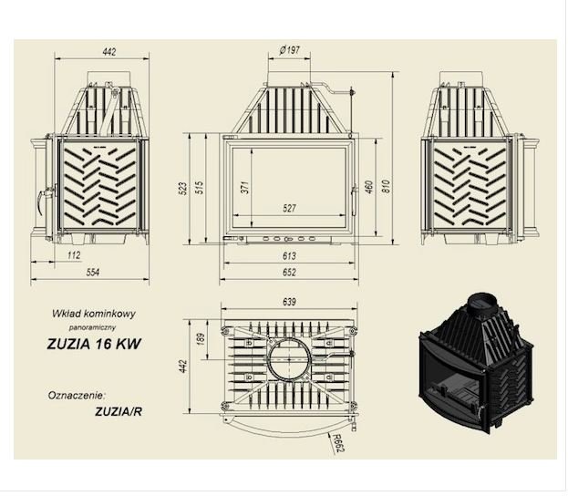 Инструкции, чертежи, документы - Каминная топка Kratki Zuzia/R (панорама)