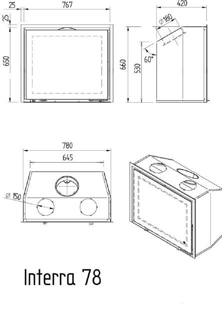 Инструкции, чертежи, документы - Каминная топка M-design Interra 78 (Интерра 78)