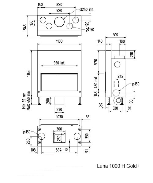 Инструкции, чертежи, документы - Каминная топка M-design Luna 1000 H Gold+, чугун
