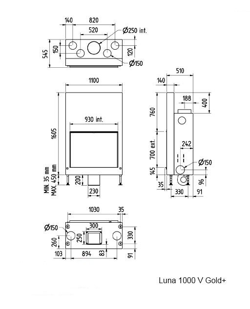Инструкции, чертежи, документы - Каминная топка M-design Luna 1000 V Gold+ (Луна 1000 V Голд+)