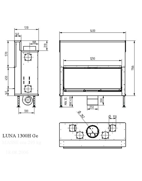 Инструкции, чертежи, документы - Каминная топка M-design Luna 1300 H Gold+