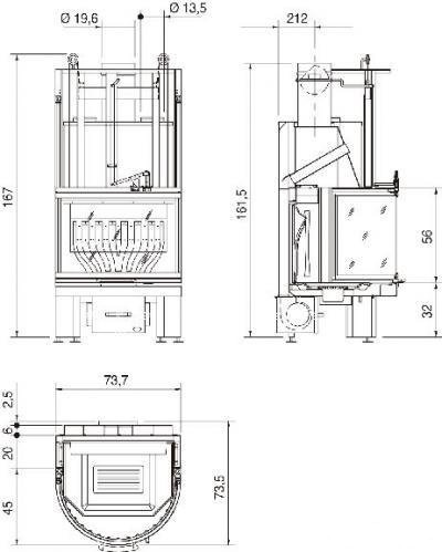 Инструкции, чертежи, документы - Каминная топка Palazzetti Ecomonoblocco 66 round 180°