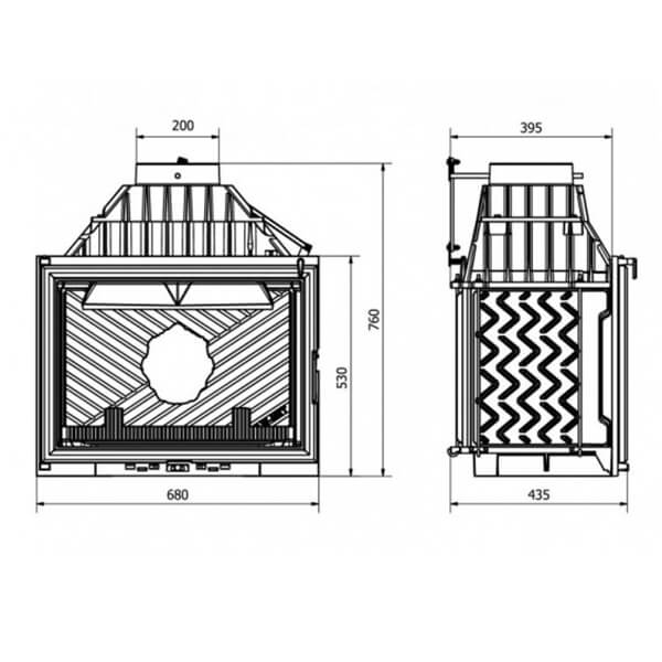 Еще одной отличительной особенностью каминных топок Kawmet является наличие встроенной шиберной заслонки с блокиратором дверцы.