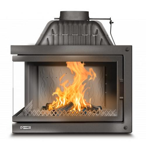 Еще одной отличительной особенностью каминных топок Kawmet является наличие встроенной шиберной заслонки с блокиратором дверцы.
