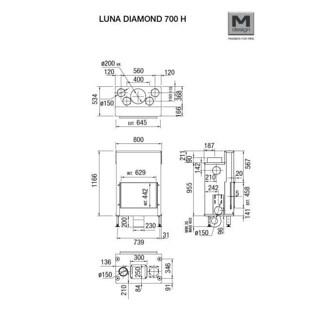 Инструкции, чертежи, документы - Каминная топка M-Design Luna 700 H Даймонд+ (Луна 700 H Даймонд+)