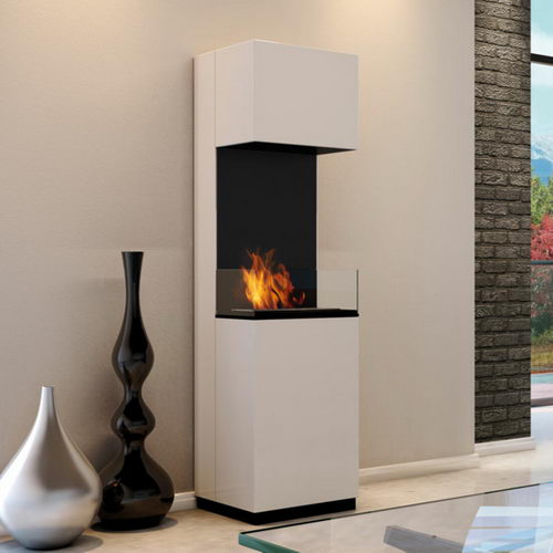 В маленьком помещении вертикальный биокамин экономит место. Благодаря солидному «росту», он не затеряется и в просторной комнате с высокими потолками.