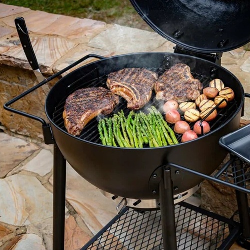 Непрямой жар создаётся, если угли сдвинуть к краям, а продукты разместить в центре. При закрытой крышке гриль превращается почти в печь: воздух циркулирует, и еда готовится медленно, сохраняя соки.